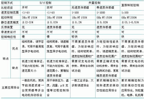 附表 变频器控制方式的性能特点