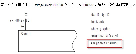 答:在页面模板中加入#PageBreak 140050(位置) 或140020(功能) 命令即可实现。