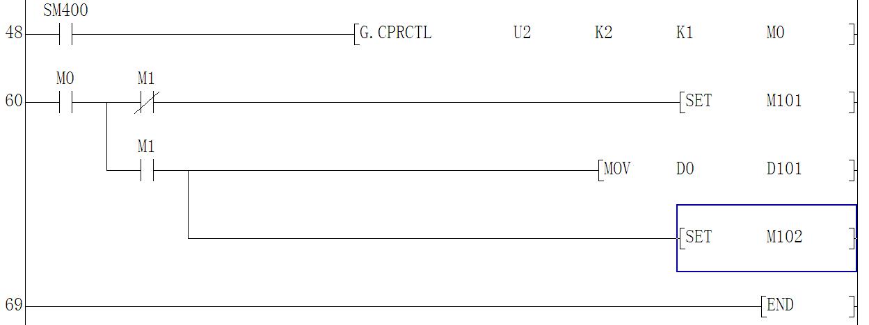 各位大神~~~哪位能给个CPRCTL的例子,本人刚刚接触PLC编程,写了个CPRCTL的程序但是CPU总是报错。。。我是用work2编了个通讯协议写到通讯模块的flash rom的,协议编号是1,程序如下:
