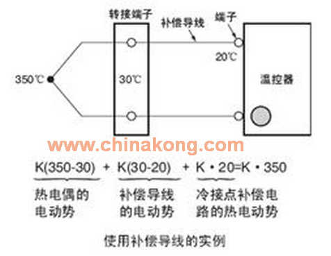 在实际的应用中, 测量点和温度控制器相隔较远。由于热电偶相同材质的电线较贵,因此使用补偿导线。补偿导线如果不符合热电偶的特性,就无法正确测量温度。