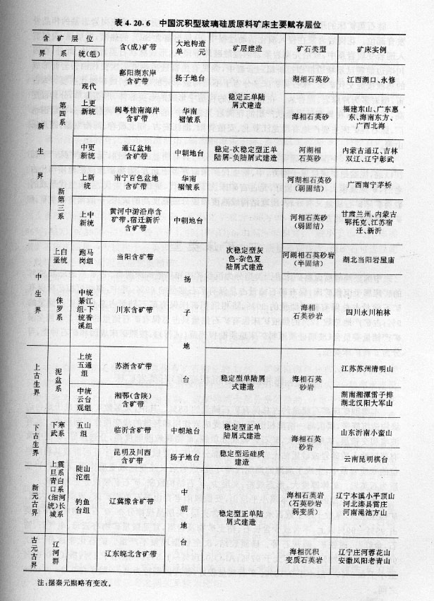 表4.20.6中国沉积型玻璃硅质原料矿床主要赋存层位
