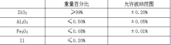 1、化学成份: 2、粒度组成 3、含水率:硅质原料水份≤5% 4、微量有害杂质含量 在硅质原料的有害杂质中,除了严格控制氧化铁以外,还应该控制其它在含量上足以使玻璃难熔及产生有害着色的元素。 其中TIO2 ≤0.02% Cr2O3 ≤0.001% 5、难熔物颗粒的控制 要求硅质原料中不允许含有粒径在0.2MM以上的铬铁矿、高铝矿物及其它难熔矿物颗粒。 6、硅质原料在生产、储存、运输过程中严禁有外来的木块、砖块、铁块、塑料以及其它影响玻璃生产的有害物质污染。