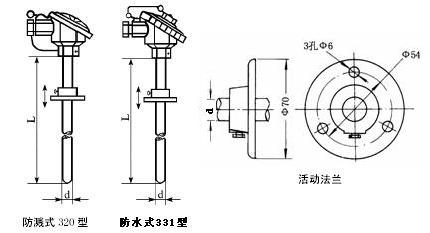 4、活动法兰式热电偶 示意图: 公称压力:常压 活动法兰式热电偶综合特性
