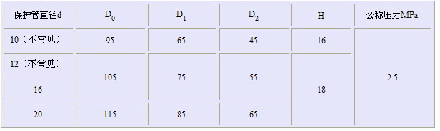 6、固定法兰式热电偶 示意图: 固定法兰规格尺寸 (mm) 固定法兰式热电偶综合特性
