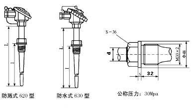 7、固定螺纹式锥型保护管热电偶 示意图: 固定螺纹式锥型保护管热电偶综合特性