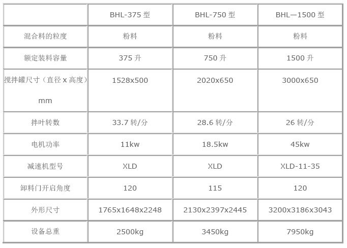 BHL型混合机结构简单,操作方便、安全。传动系统采用新结构,不需专用润滑设备,刚性好,运转稳定可靠,噪音低,延长使用寿命,与国内同类产品相比节能16%,更换易损件及维修方便,经国内同行评定,该产品达到国际先进水平,填补了国内空白。是玻璃行业必备设备,主要用于玻璃原料混合,将多种成分的原料搅拌均匀,以供玻璃制品生产的需要。常用规格有:BHL-375型,BHL-750型,BHL-1500型,BHL-2250型。也可按客户要求加工定做