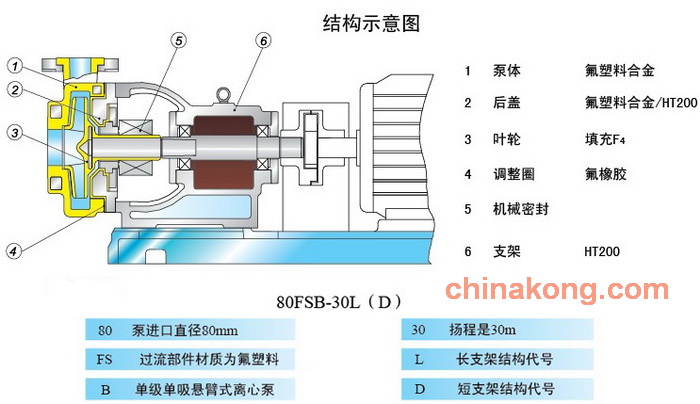 FSB系列氟塑料合金离心泵,可在-80—150度温度的条件下,长期输送任意浓度的各种酸、碱、盐、强氧化剂等多种腐蚀性介质,其壳体及过流部分全部用F50氟合金制成,它集多种氟塑料之优点,具有特强的耐腐蚀性,并具有机械强度高,不老化,无毒素分解优点。该产品机械强度高,设计合理,结构紧凑,性能可靠,使用维修方便,流道光滑效率高,节约能源,荣获“国家科学技术奖”。