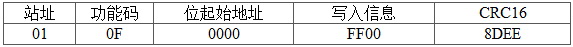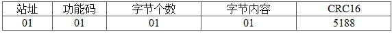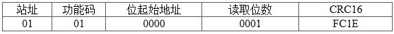 功能码“01”的功能为读位信息,后跟位起始地址和读取位数,通讯正常的情况下,可以从返回的报文获知读取的位状态,