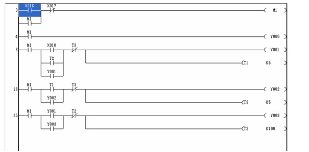 http://www.chinakong.com/upload/upload13/201406042149488.png 目的是用这个程序控制气缸运动,从上接近开关到下接近开关,并通过控制电磁阀换向。 求大神帮忙解释一下梯形图上每一段的意思。 PLC小白谢谢了!